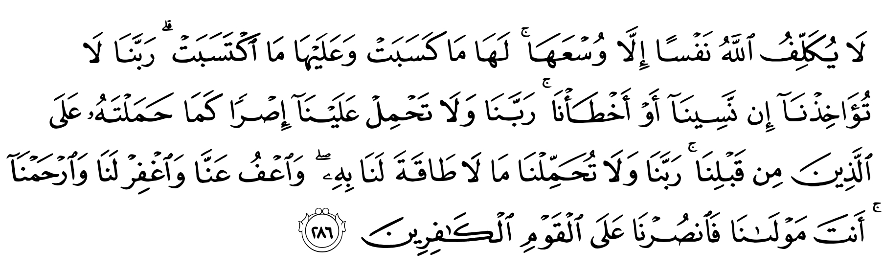 The Prophet (ﷺ) said: “Indeed Allâh wrote in a book two thousand years before He created the heavens and the earth, and He sent down two Âyat from it to end Sûrat Al-Baqarah with. If they are recited for three nights in a home, no Shaitan shall come near it.“